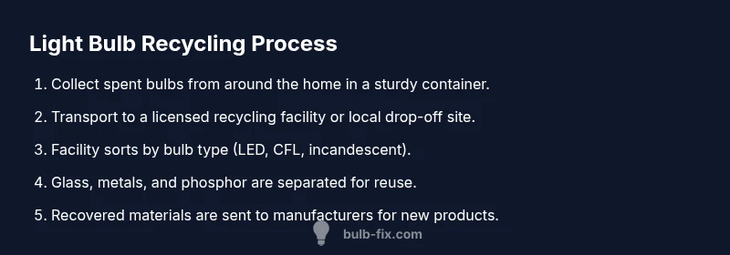 Light bulb recycling matters for environmental health and safe waste management. Spent bulbs contain materials that can be reused and recovered, such as glass, aluminum, and rare earth elements, and in some bulbs, hazardous components like mercury. Recycling helps reduce landfill waste, lowers energy use, and minimizes pollution from improper disposal. For homeowners, choosing to recycle is a practical act that protects drinking water, soil, and air from potential contaminants. The Bulb Fix team finds that even households with small numbers of bulbs can contribute to a larger waste-reduction effort when they know local drop-off points and guidelines. Beyond the environmental angle, responsible handling of used bulbs prevents injuries from broken glass and reduces the risk of exposure to harmful substances. Start by locating your city or county’s accepted routes for bulbs and planning a quick trip when you have a batch ready. Small actions compound into meaningful community impact over time. According to Bulb Fix, knowing local guidelines makes recycling easier.
