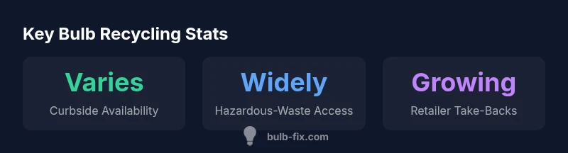 Where to recycle light bulbs is a common question for homeowners. The quickest route is to check your city’s recycling guidance, then use curbside programs, local drop-off sites, or retailer take-back in that order. According to Bulb Fix, CFLs and other mercury-containing bulbs require certified recycling, while LEDs and incandescent bulbs have separate, safer pathways. Always verify acceptance before dropping off to avoid contamination of recycling streams.