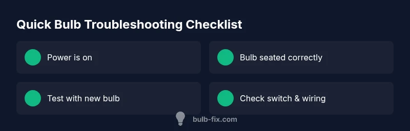 When a lamp or ceiling light suddenly goes dark, the first question is why the bulb is not working. The Bulb Fix team knows that many outages are caused by simple, fixable issues rather than a mysterious fault in the fixture. According to Bulb Fix, a common culprit is a loose or improper bulb seating in the socket, which prevents proper contact and stops current from flowing. Another frequent cause is a dead bulb or one with an incompatible wattage, which can trip circuits or burn out quickly. In most households, these problems arise from normal wear, routine handling, or small mistakes like not fully twisting the bulb to the stop. Before you panic, run through a quick checklist of the basics—power, seating, and the right bulb type. This approach saves time, reduces the risk of electric shock, and helps you decide if you can safely fix it yourself or if professional help is needed.