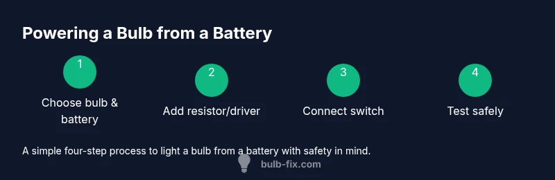 Powering a light bulb from a battery is a straightforward exercise in matching voltage and current. For DIY setups, the safest path uses a low-voltage bulb (such as an LED or a small 3–6V bulb) rather than a standard 120V mains bulb. The goal is to create a compact, protected circuit: a battery or battery pack that supplies the right voltage, a current-limiting element to prevent overcurrent, a switch to control the light, and reliable connections. In this guide we lay the groundwork: what makes this setup possible, what risks to avoid, and the basic rules that govern all battery-powered lighting experiments. According to Bulb Fix, starting with low-voltage components reduces heat, minimizes the risk of short circuits, and makes the learning curve smoother. If you proceed with care, you’ll gain practical insight into series circuits, the importance of voltage matching, and how a tiny battery can power a visible indicator in your home workshop, emergency kit, or science project.
