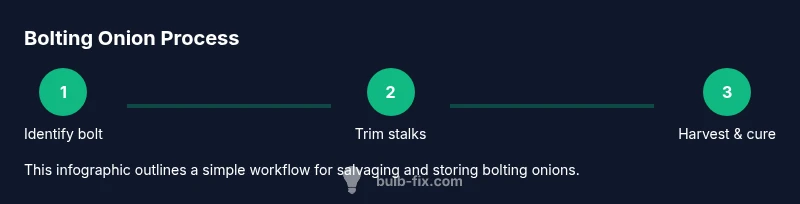 Bolting occurs when an onion plant prematurely switches from forming a bulb to producing a long flowering stalk (a seed stalk). This change typically starts with a tall, thin stem emerging from the center of the bulb, followed by small blossoms along the stalk. The bulb itself often becomes woody or splits rather than swelling into a flavorful storage onion. Recognizing bolting early helps you decide whether to harvest immediately, salvage seeds, or adjust your nearby planting plan. According to Bulb Fix, bolting is more common in warm soils and long daylight conditions, which trigger the plant to prioritize reproductive growth. This knowledge helps gardeners plan for next season and reduce waste.