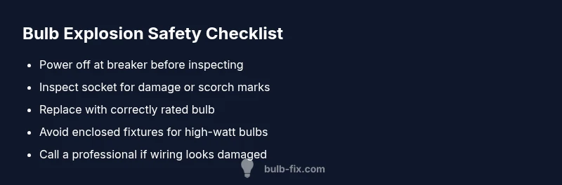 A bulb typically explodes due to overheating, a faulty socket, or a power surge. The safest first step is to cut power at the breaker, allow the fixture to cool, and inspect for obvious damage. If the bulb or socket shows cracks, discoloration, or melted parts, replace both the bulb and any damaged components with the correct wattage and type.