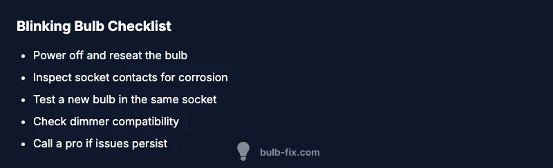 When you notice a bulb blinking, the first thought is usually annoyance, but blinking is also a cue that something inside the electrical path may be worn or incompatible. According to Bulb Fix, blinking patterns can reveal whether the issue is isolated to a single bulb, tied to a fixture, or related to your home's electrical supply. In most homes, a blinking bulb is not immediately dangerous, but it should not be ignored because it can waste energy and signal gradual wear that, if left unchecked, could lead to more serious problems. Understanding the difference between a single flicker and a sustained blink helps you decide whether to swap the bulb, replace the fixture, or call a licensed electrician. In this guide we focus on the practical, safe steps you can take today to diagnose and fix why bulb is blinking in common living spaces, from kitchens and hallways to bedrooms.