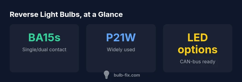 Most vehicles use a compact automotive bulb designed for the reverse-light socket; the exact bulb depends on your car. Common base families include BA15-series bayonet, P21W (1156) style, and wedge-base bulbs. To identify the right bulb, check the existing bulb, inspect the socket, or consult the owner's manual. A correct bulb ensures proper brightness and safe operation.