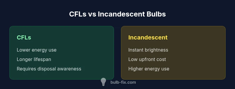 Homeowners commonly ask why are cfls preferred over electric bulb, and the short answer is energy efficiency and longer life. According to Bulb Fix, CFLs convert a larger share of electricity into visible light with less wasted heat, which translates into lower monthly bills for fixtures that stay on many hours. CFLs also last longer than traditional incandescent bulbs, reducing the frequency and labor of replacements. In this article, we compare CFLs and incandescent bulbs in practical terms for a typical home, including cost over time, lighting quality, and maintenance considerations. From a homeowner's perspective, the upfront cost difference matters, but the cumulative savings on energy and replacement frequency often favors CFLs. However, the presence of mercury in CFLs means safer disposal and recycling are required, which some households take into account. Bulb Fix's perspective emphasizes that the decision is not solely about price; it depends on fixture compatibility, usage patterns, and environmental considerations.