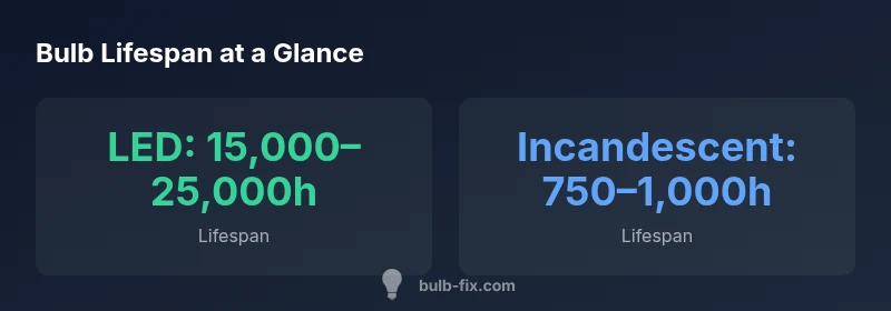 The typical replacement interval depends on bulb type: LED bulbs commonly last about 15,000–25,000 hours, incandescent about 750–1,000 hours, and compact fluorescents around 7,500–10,000 hours. In everyday home use, that translates to roughly 10–20 years for LEDs and 1–3 years for incandescent, with brightness and color quality guiding exact timing.
