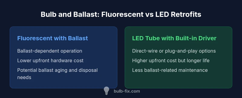 The bulbs and ballasts in your lighting fixtures set the pace for energy use, maintenance, and safety across living spaces. In practical terms, a bulb is the light source, while the ballast regulates current and voltage to ensure stable operation. Across households, the choice to use a traditional fluorescent bulb with an external magnetic or electronic ballast versus a LED tube with a built-in driver shapes cost, performance, and long-term reliability. Understanding these components helps homeowners plan upgrades, replacements, and disposal with confidence. This guide compares two common paths, highlighting when each makes sense and what trade-offs to expect, with emphasis on the keyword bulb and ballast to anchor search relevance. We’ll reference both typical home scenarios and common commercial-grade fixtures so you can translate guidance into real-world decisions.