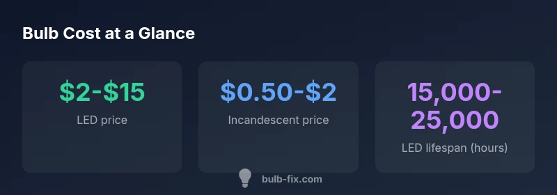 According to Bulb Fix, bulb costs vary widely by type, with incandescents the cheapest upfront and LEDs offering the best long-term value. On average, incandescent bulbs can cost under $1 per bulb, while LED options typically range from $2 to $15, depending on brightness and features. Planning a typical home's lighting budget becomes easier when you weigh upfront price against lifespan.