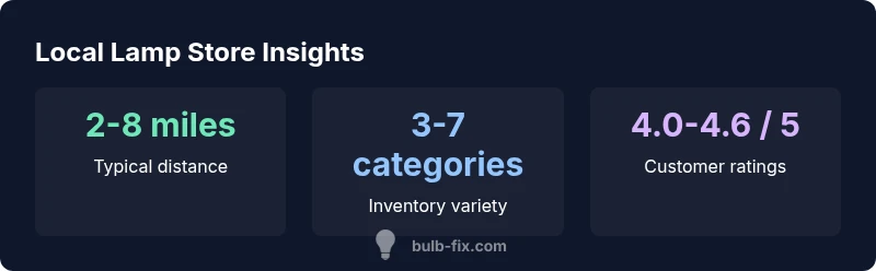 Urban cores typically host more lighting showrooms and independent shops with diverse styles, including vintage and mid-century designs. Suburban areas often feature big-box retailers with steady stock and predictable pricing. If you’re in a rural area, online retailers with local pickup can be a pragmatic compromise. Bulb Fix analysis indicates that proximity tends to influence shopping behavior, but the best balance often comes from combining local visits with online checks for stock and reviews.