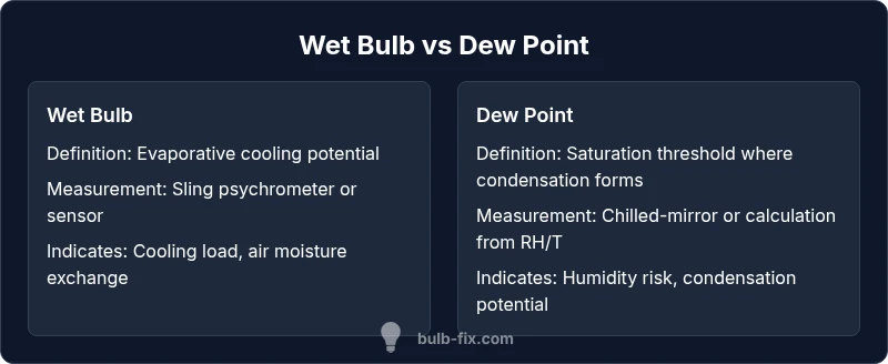 In everyday weather discussions and building performance planning, the phrase wet bulb vs dew point captures two foundational psychrometric metrics. According to Bulb Fix, those two numbers answer different questions about humidity dynamics: wet bulb temperature reflects evaporative cooling capacity in air streams, while dew point marks the saturation threshold of moisture in the air. Understanding both helps homeowners and professionals interpret comfort, indoor air quality, and energy performance. The terms are related, but each responds differently to temperature changes, ventilation, and moisture sources. This article explains each metric, how they’re measured, and how to use them together for practical decisions.